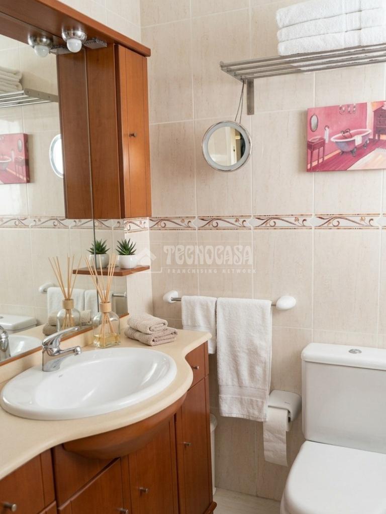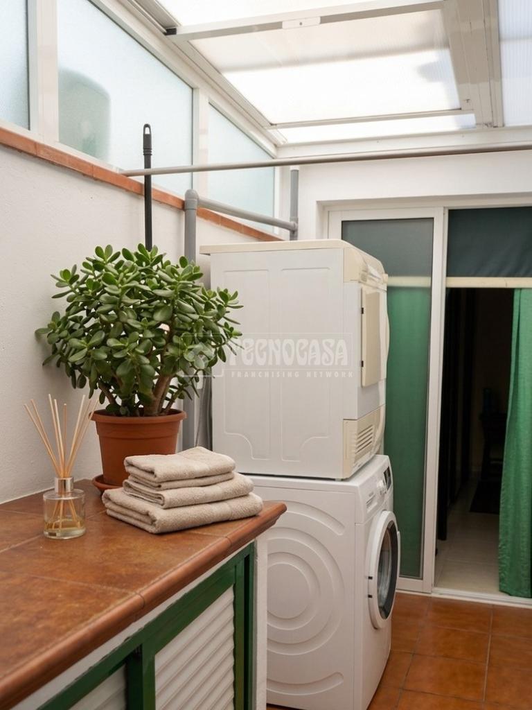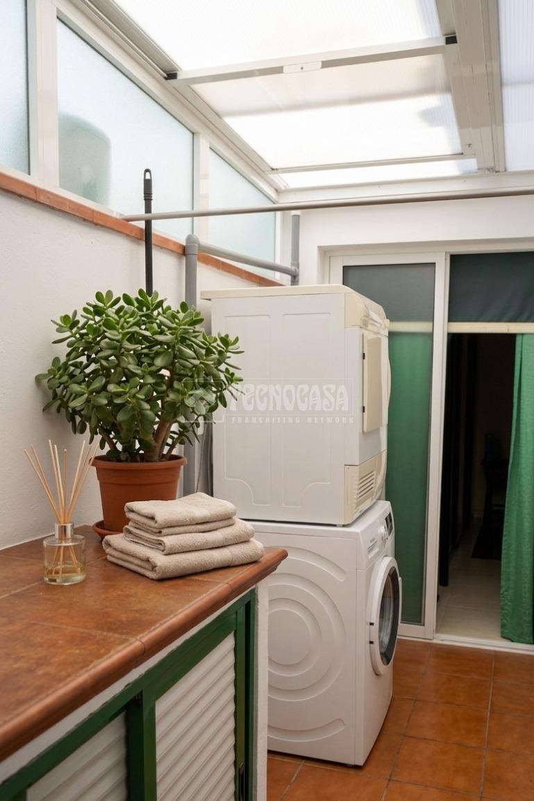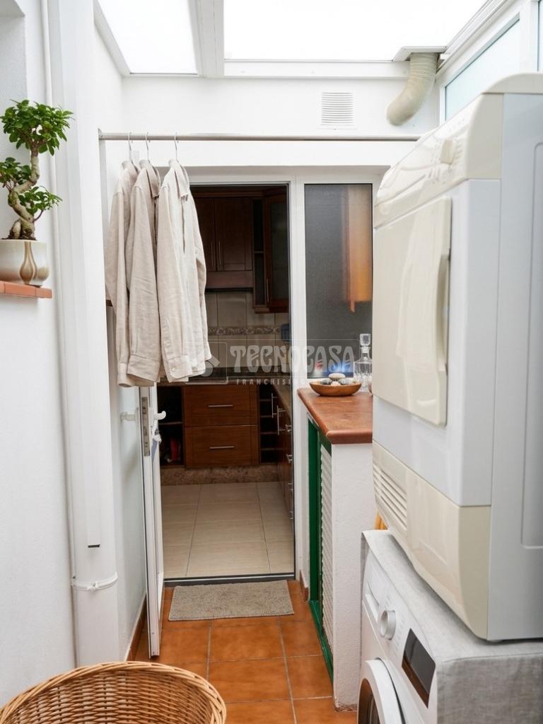 Dispone de dos baños, uno con bañera y el otro con plato de ducha, lo que aporta un extra de comodidad para el uso diario. Además, la vivienda cuenta con una zona tipo terraza interior donde se ubican la lavadora y la secadora, pensada para facilitar las tareas del hogar sin restar espacio.