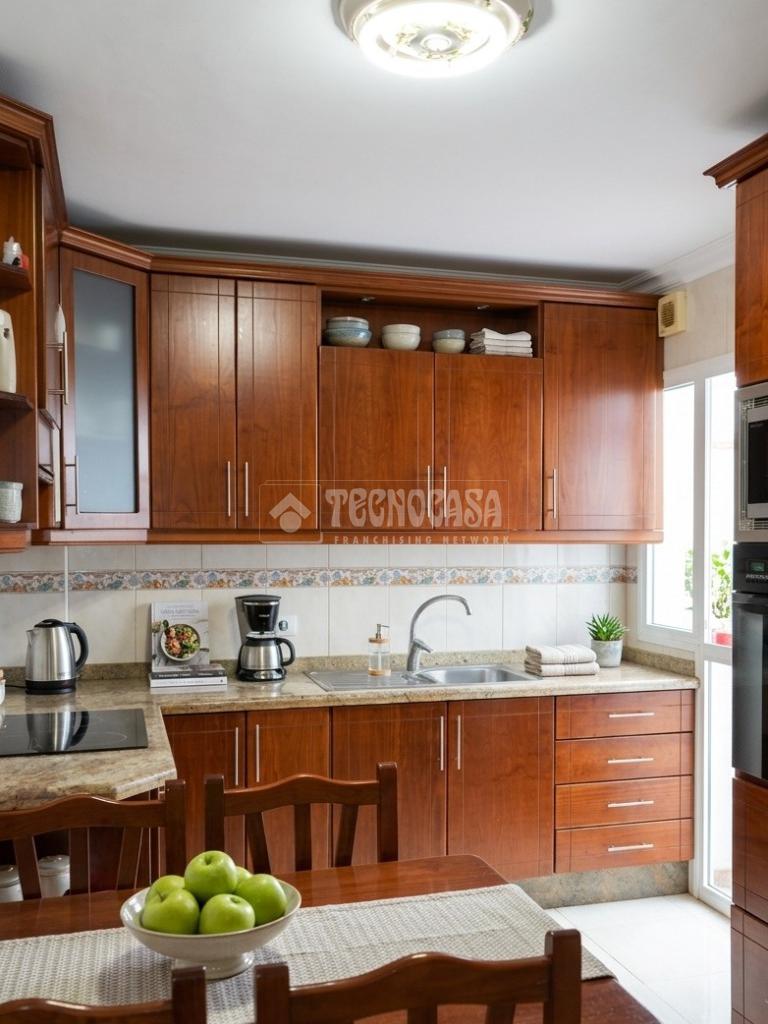 El piso cuenta con tres dormitorios bien distribuidos, un salón amplio y luminoso, perfecto para crear distintos ambientes, y una cocina totalmente equipada, funcional y práctica.