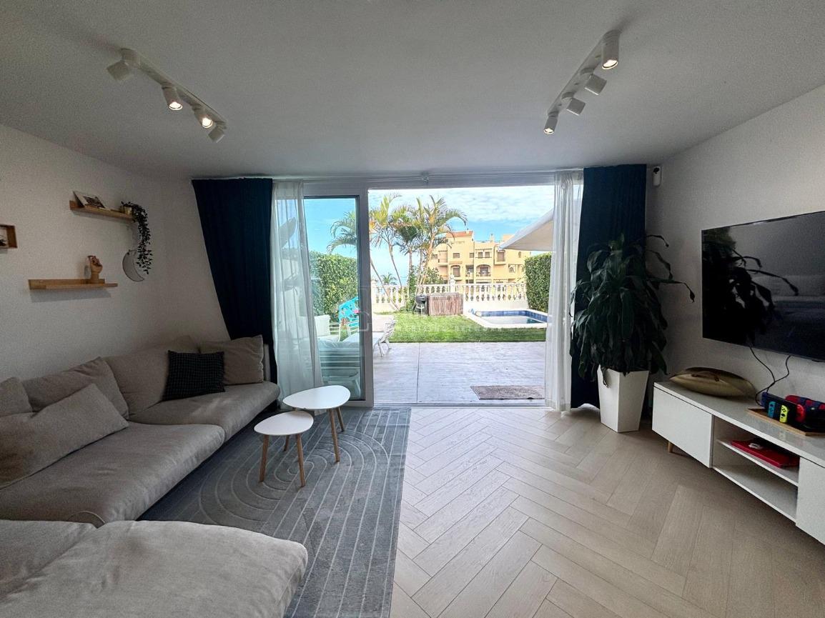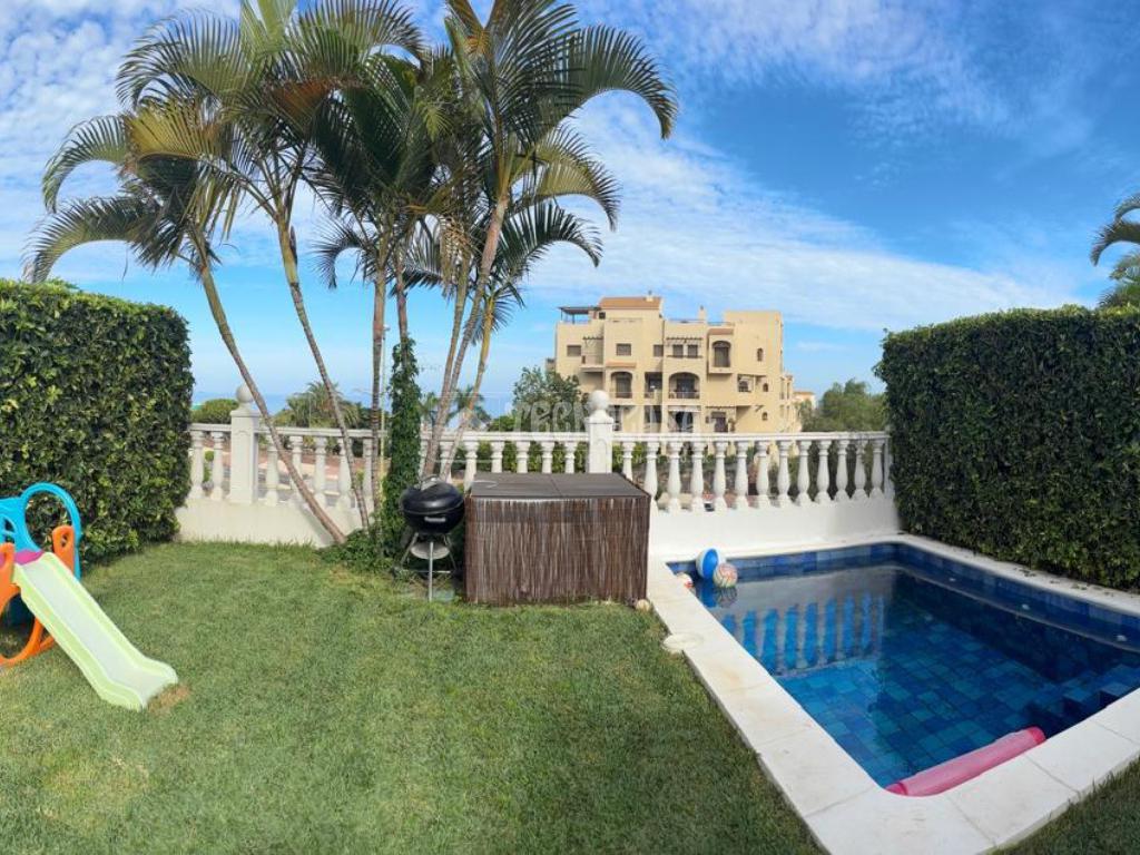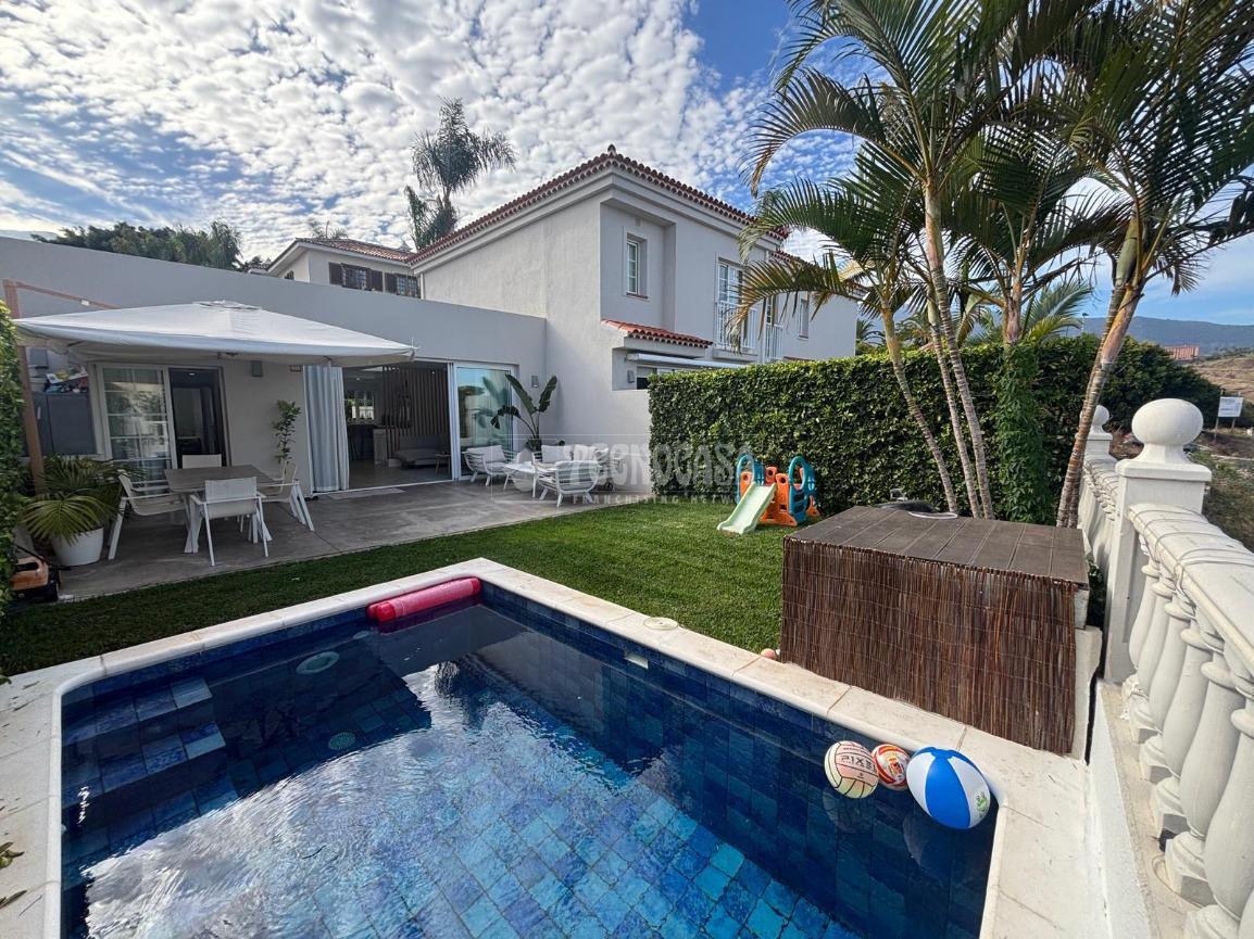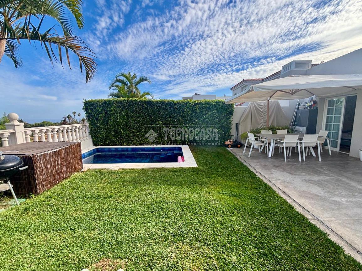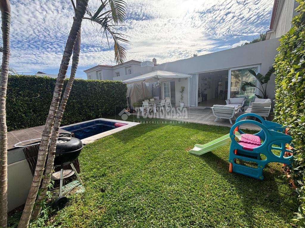 Cuenta con una terraza amplia, zona chill-out con sofá y mesa con sombrilla, jardín privado y una piscina perfecta para disfrutar del clima durante todo el año. Además, la propiedad incluye plaza de garaje, un valor añadido en la zona.