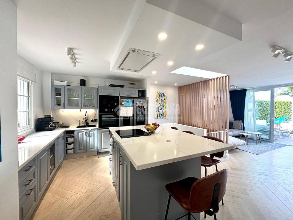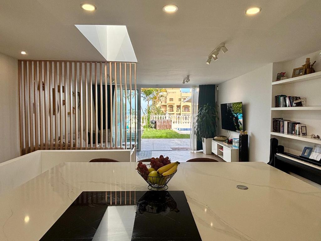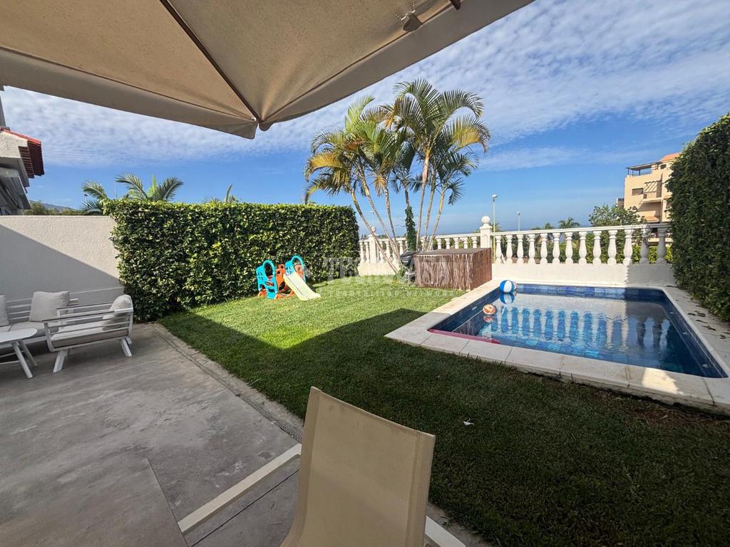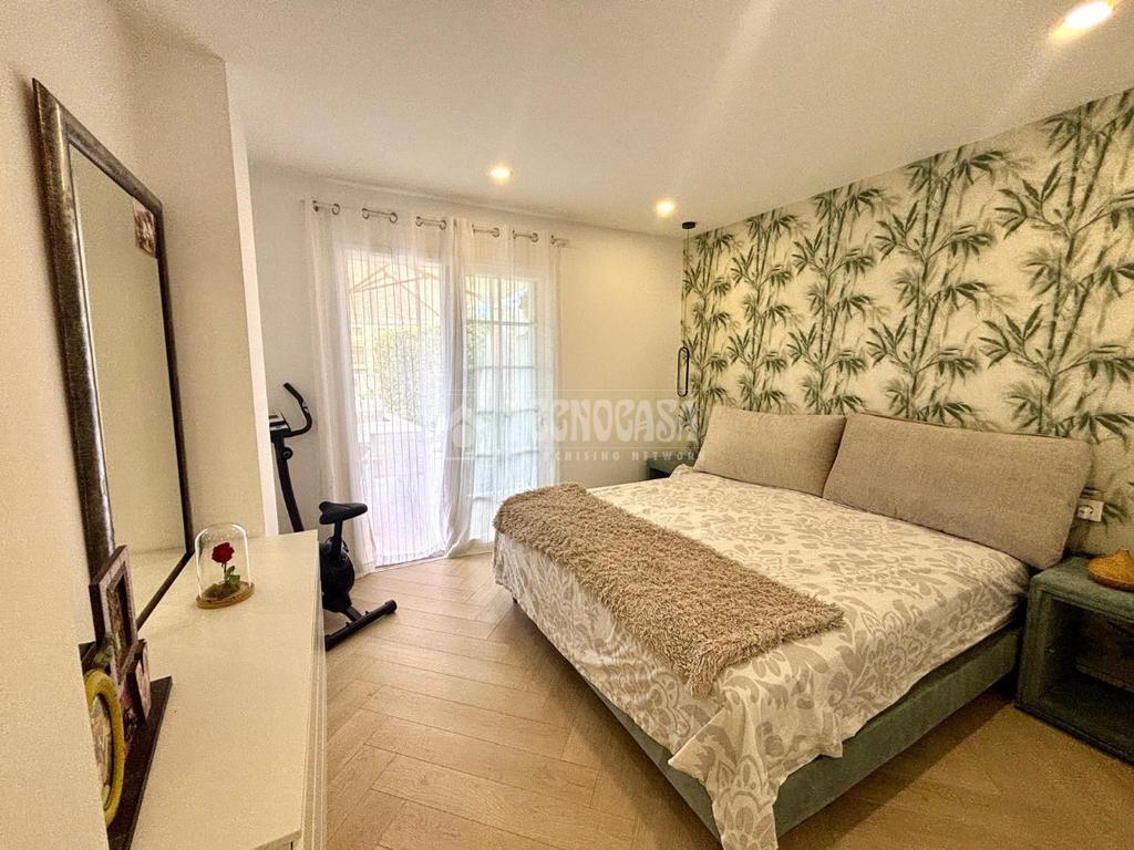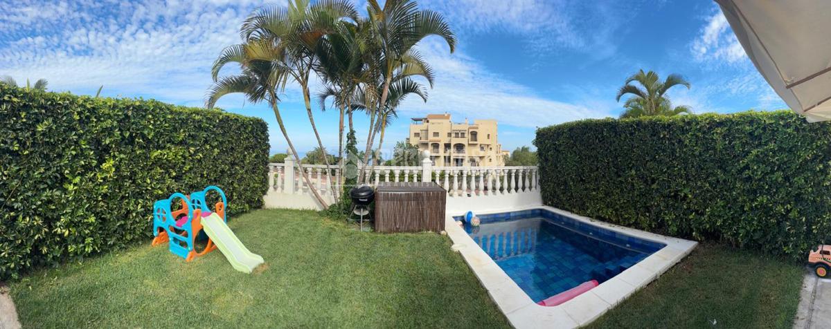 Cuenta con una terraza amplia, zona chill-out con sofá y mesa con sombrilla, jardín privado y una piscina perfecta para disfrutar del clima durante todo el año. Además, la propiedad incluye plaza de garaje, un valor añadido en la zona.