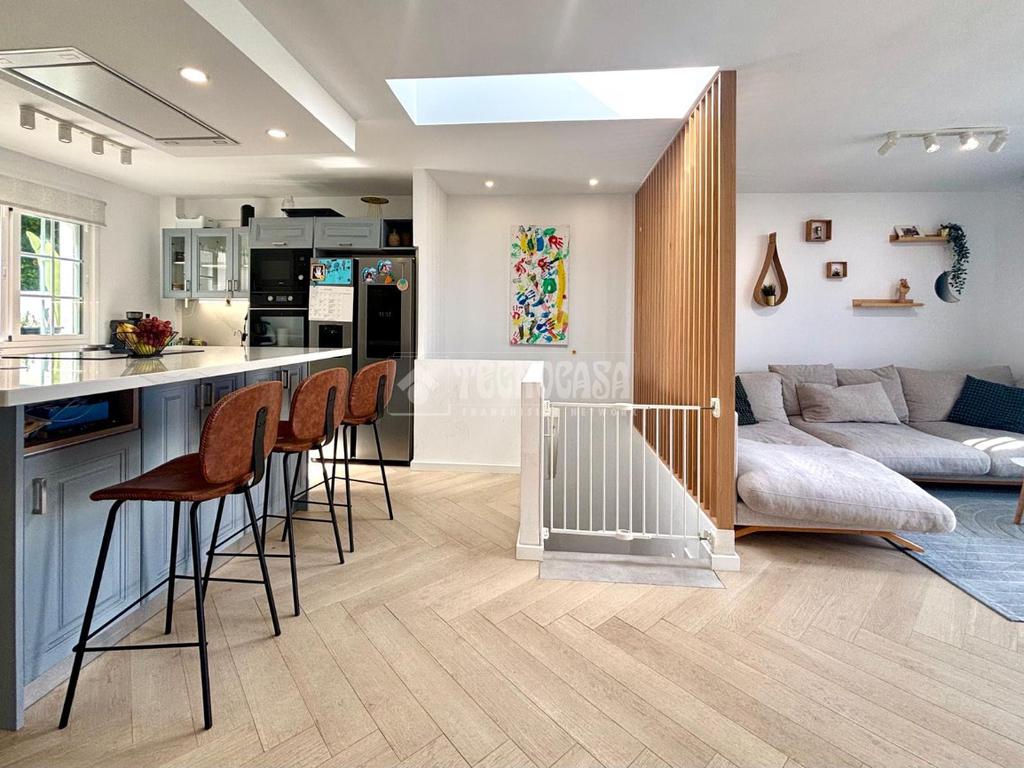 En la planta principal encontramos un amplio salón-comedor, ideal para compartir momentos en familia, junto a una cocina moderna con isla central, práctica y funcional. La vivienda dispone de cuatro habitaciones luminosas y dos baños completos, pensados para ofrecer comodidad en el día a día.