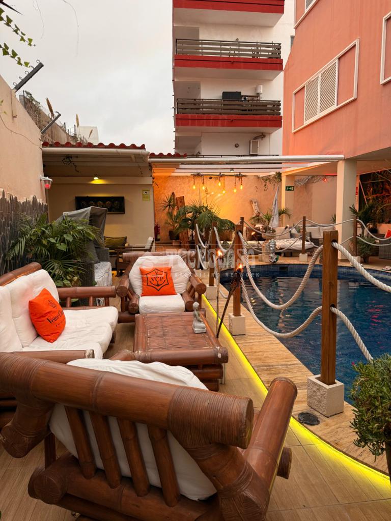 Cuenta además con una terraza exterior con piscina, un elemento poco común que aporta un importante valor añadido. Este espacio dispone de 15 sofás y permite ofrecer una experiencia más atractiva tanto para clientes locales como turísticos.