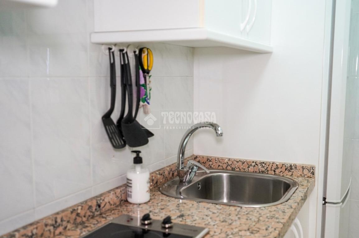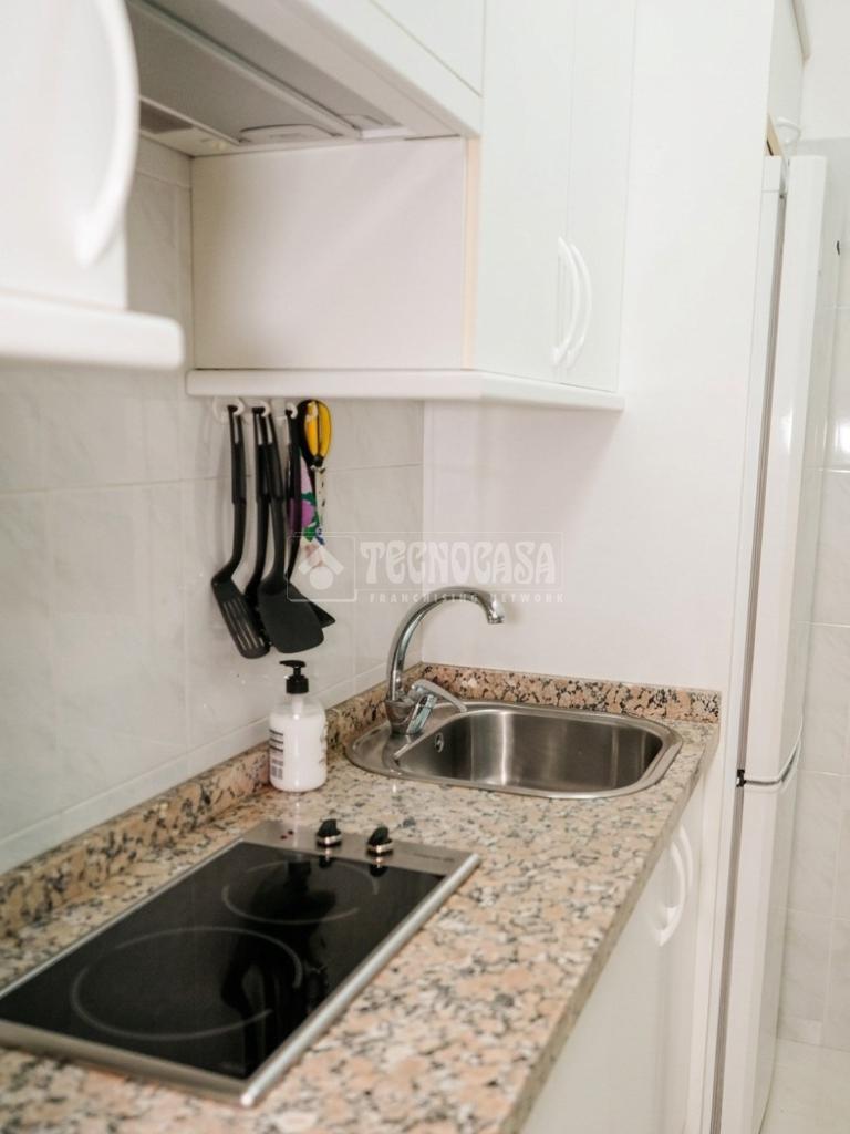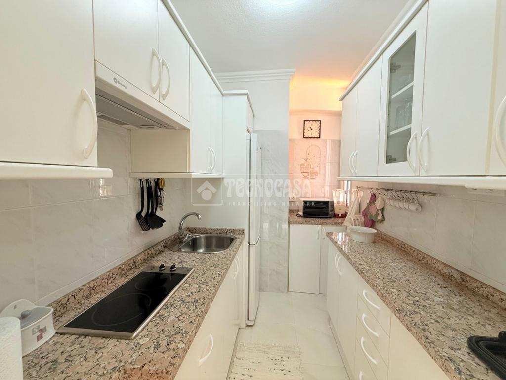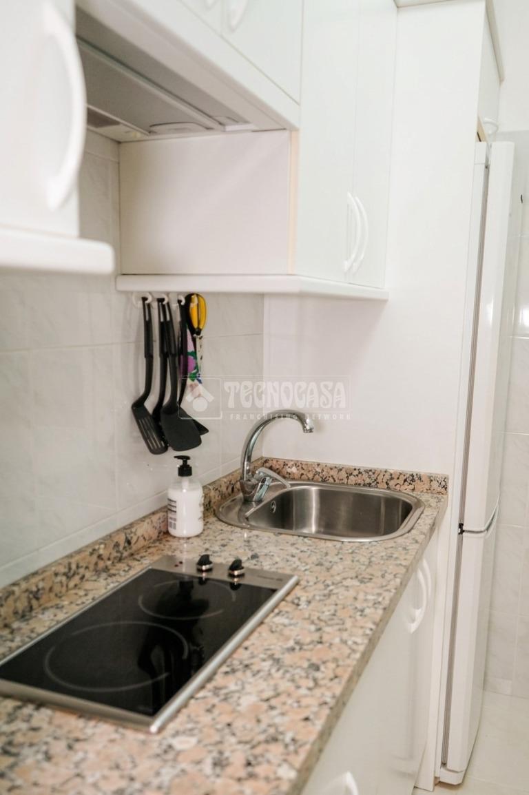 La vivienda cuenta con un amplio dormitorio, un baño moderno con plato de ducha y armario integrado, y una cocina completamente equipada. El salón-comedor es luminoso y acogedor, con un diseño actual y acabados modernos que aportan confort y estilo.